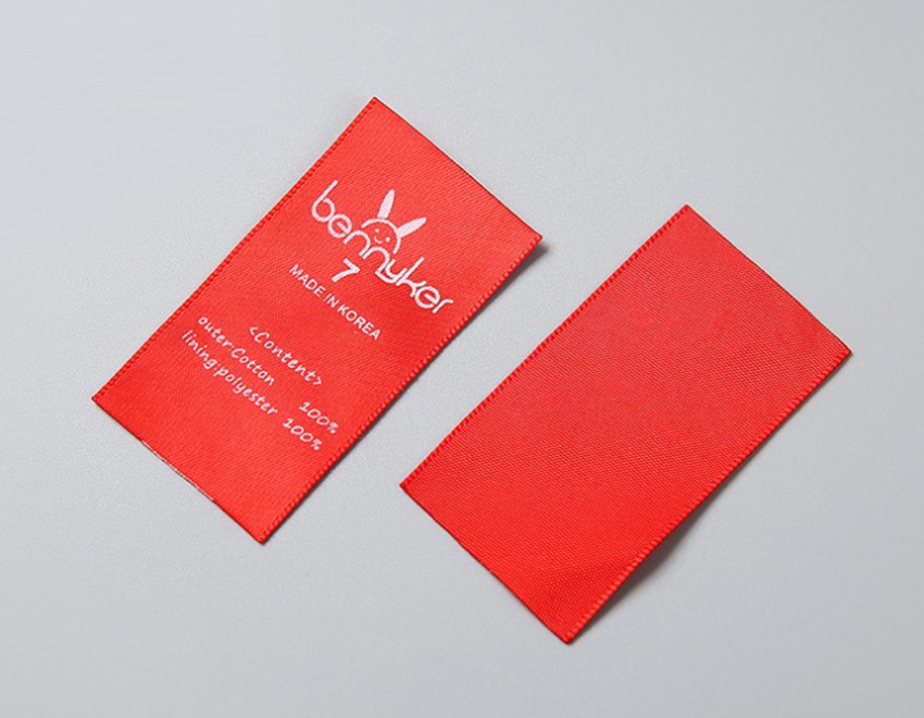 織嘜標(biāo)簽:是服裝服飾上使用特別廣泛的一種商標(biāo),是根據(jù)圖形的色彩而選用不同顏色的紗線在織標(biāo)機上直接織出來的一種商標(biāo),優(yōu)點是不掉色,因為是完全織在上面的,有立體感,織的方式多樣,有檔次感,缺點,周期長,對顏色要求嚴(yán)格的需要紗線染色,所以對起訂量有要求。